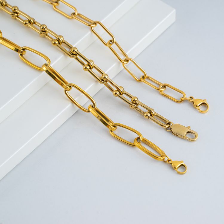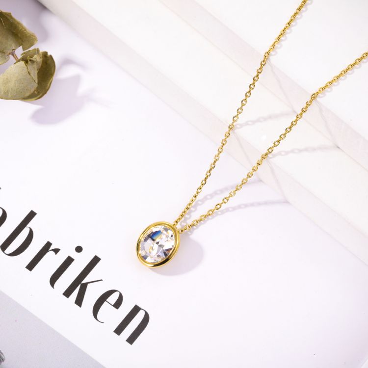 18K镀金滴油花镶嵌珍珠不锈钢项链