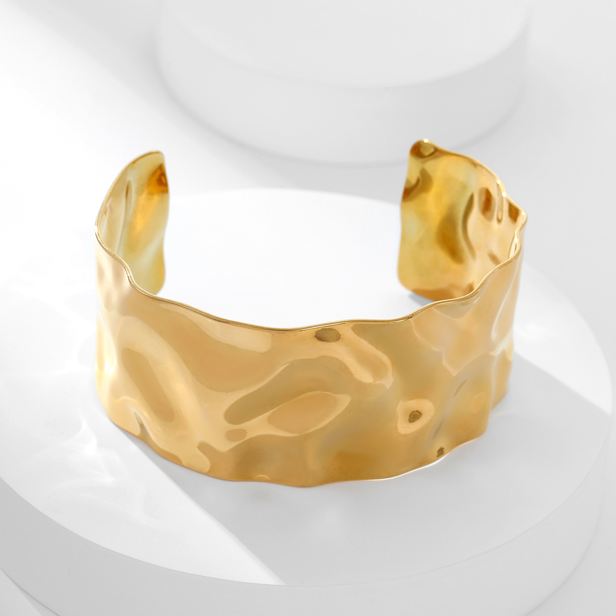 夸张不锈钢18K镀金锤纹宽手镯