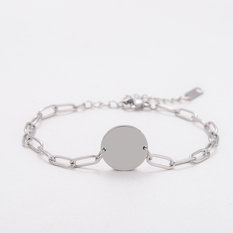 "畅销空白纪念不锈钢双孔圆形回形针链手链"