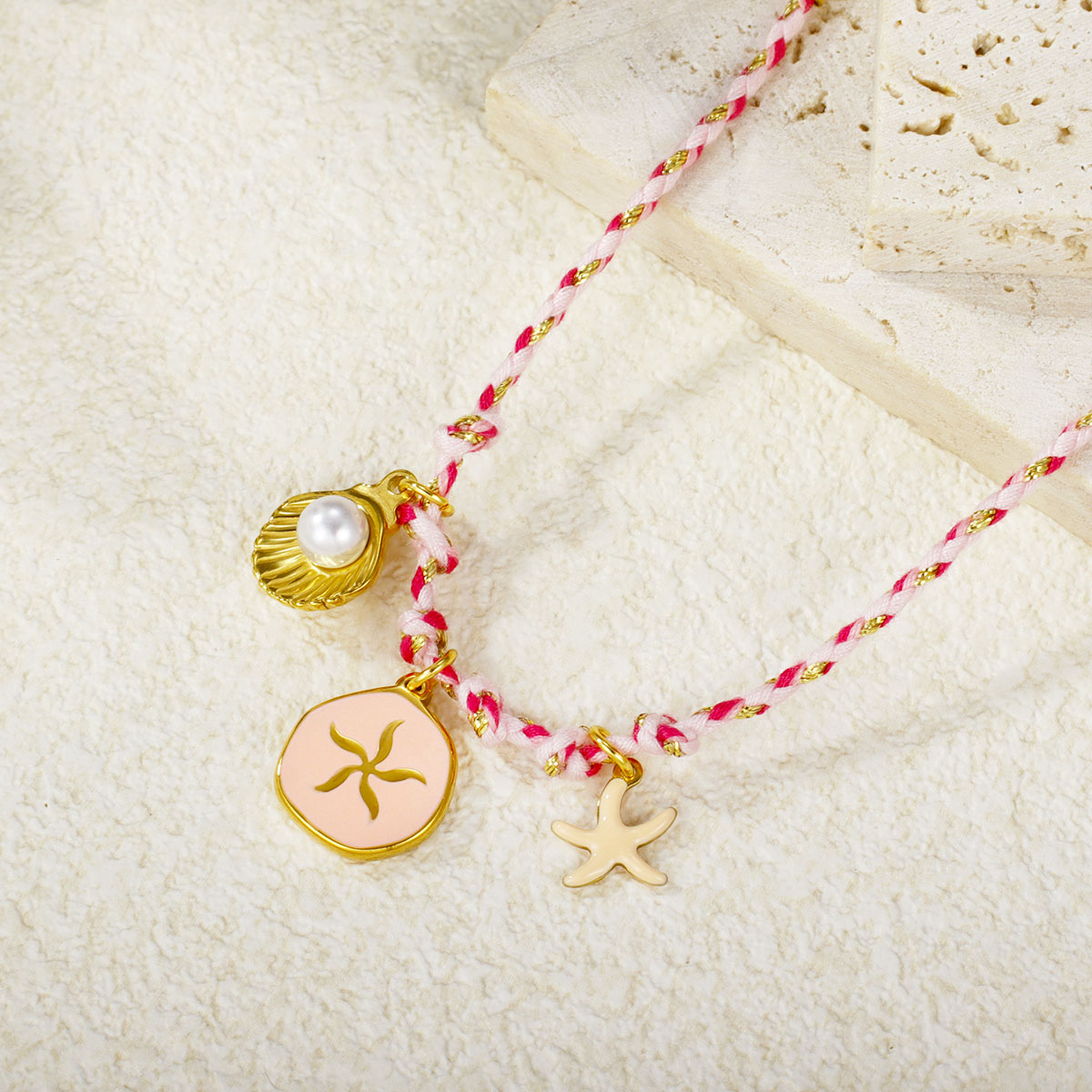 女士时尚18K镀金扇贝吊坠手链彩色绳编