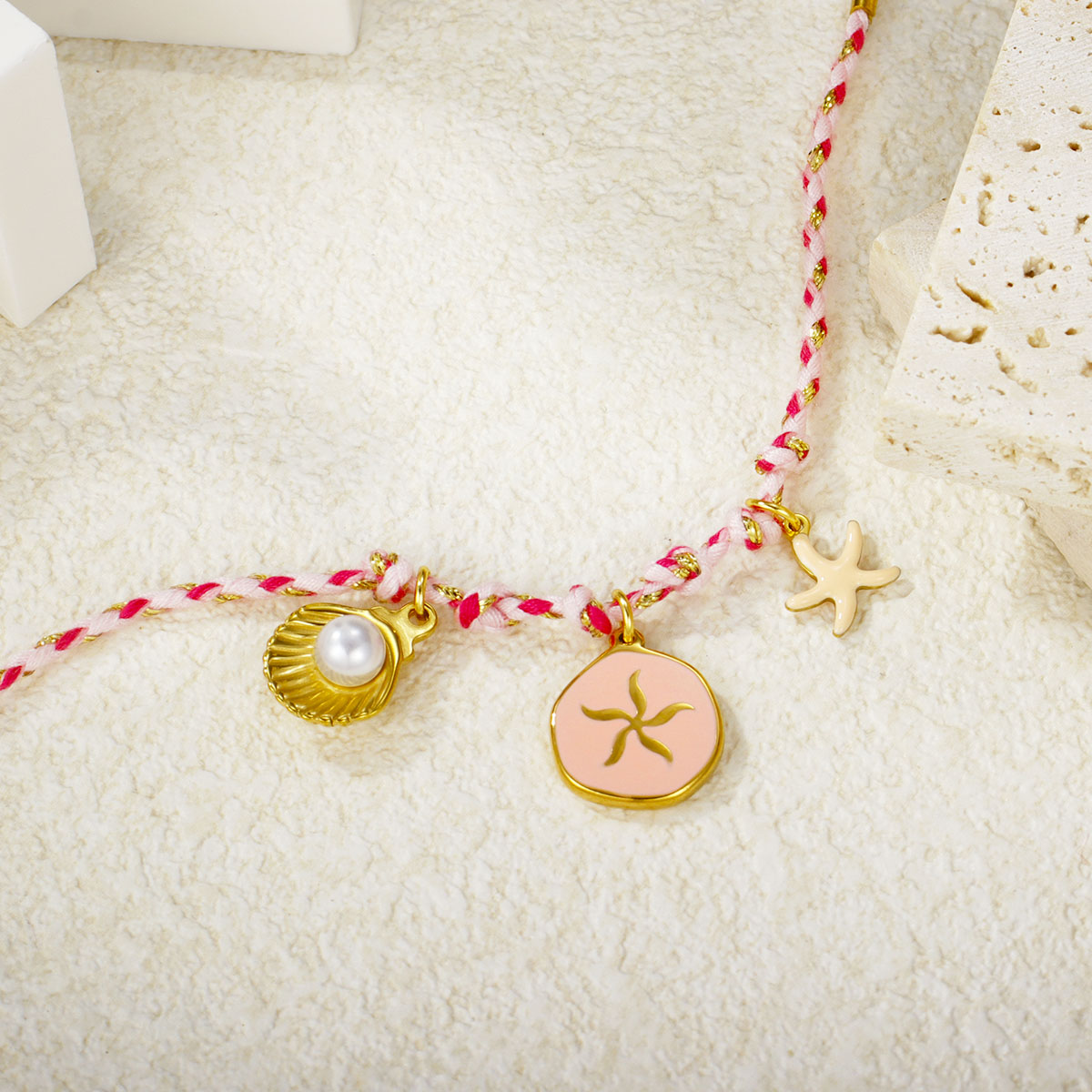 "女士时尚18K镀金扇贝吊坠手链彩色绳编"