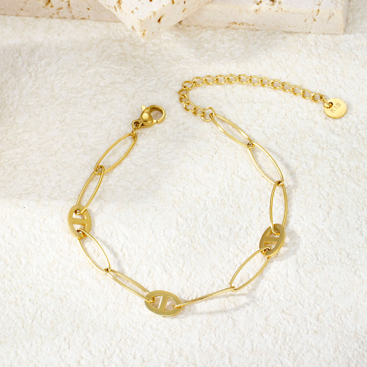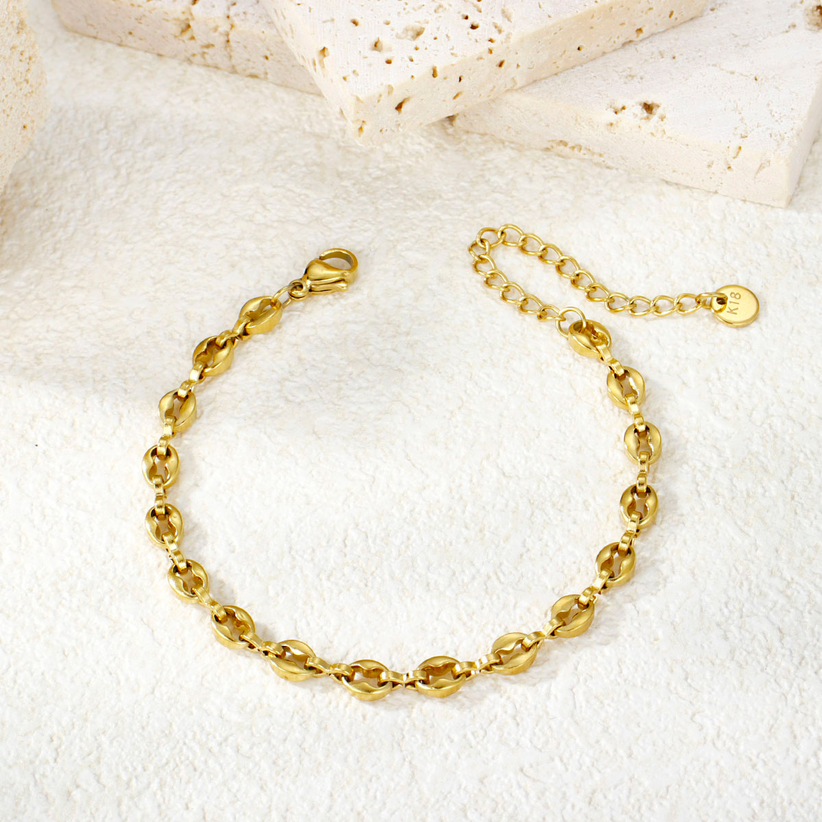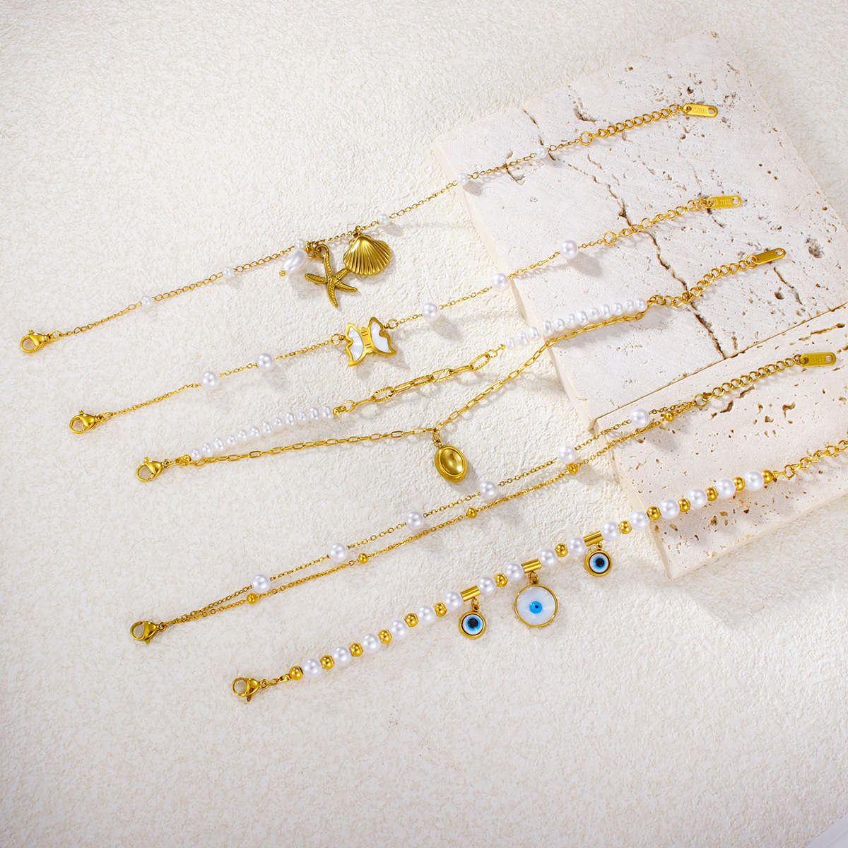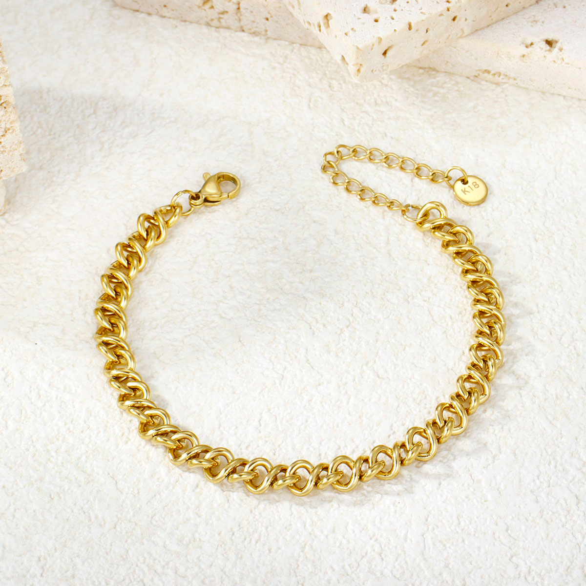 水晶镶嵌首饰 18K PVD镀金不规则纹理防水手镯