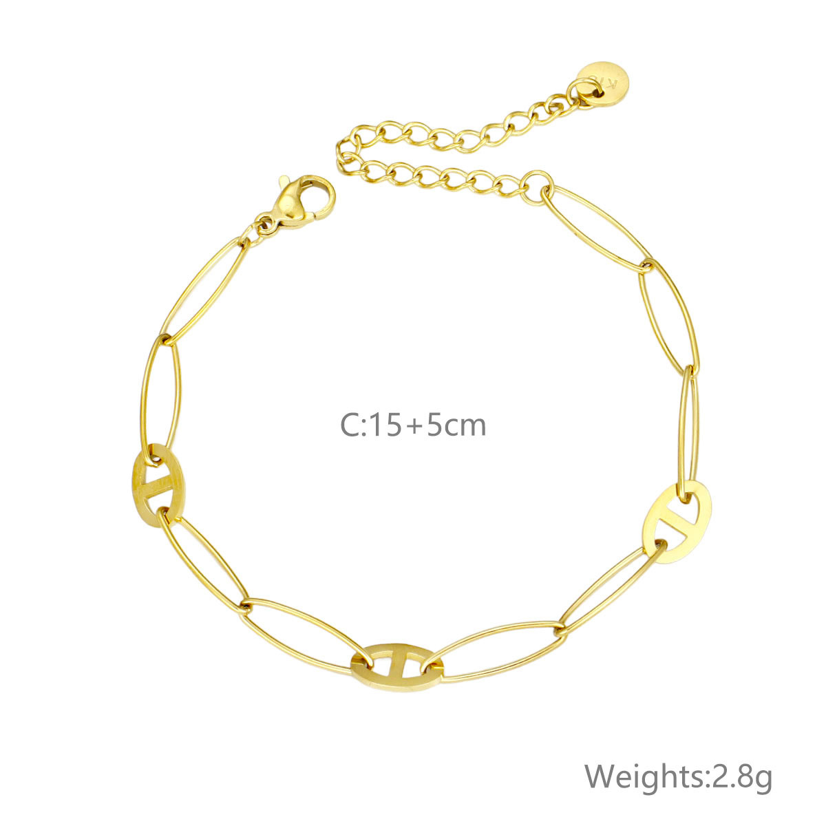 "水晶镶嵌首饰 18K PVD镀金不规则纹理防水手镯"