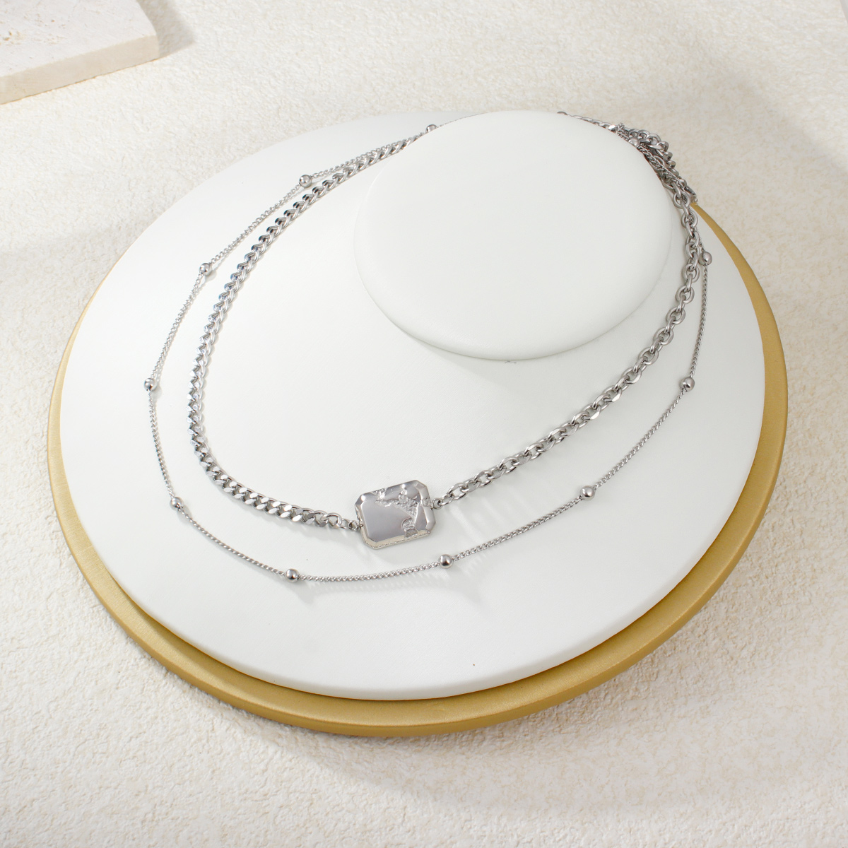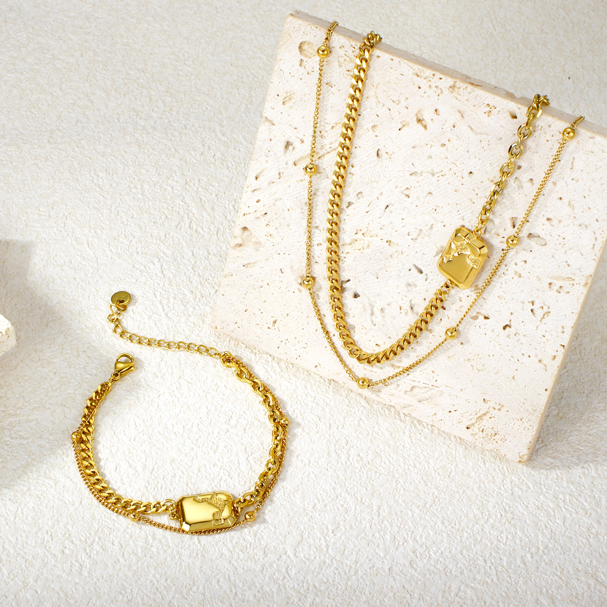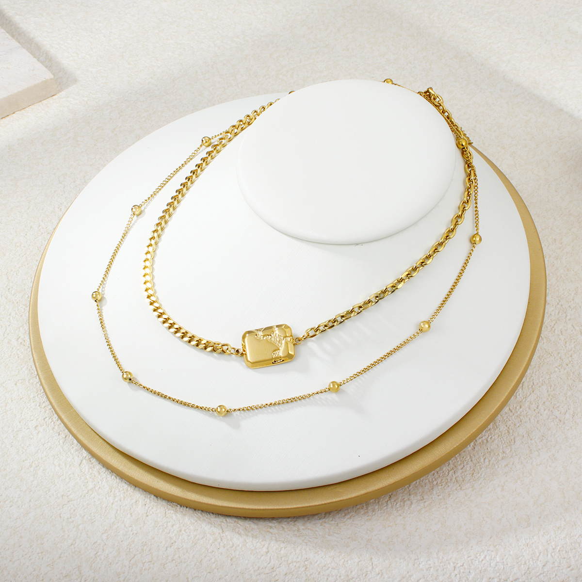 "18K镀金不锈钢首饰复古双层链方形吊坠"