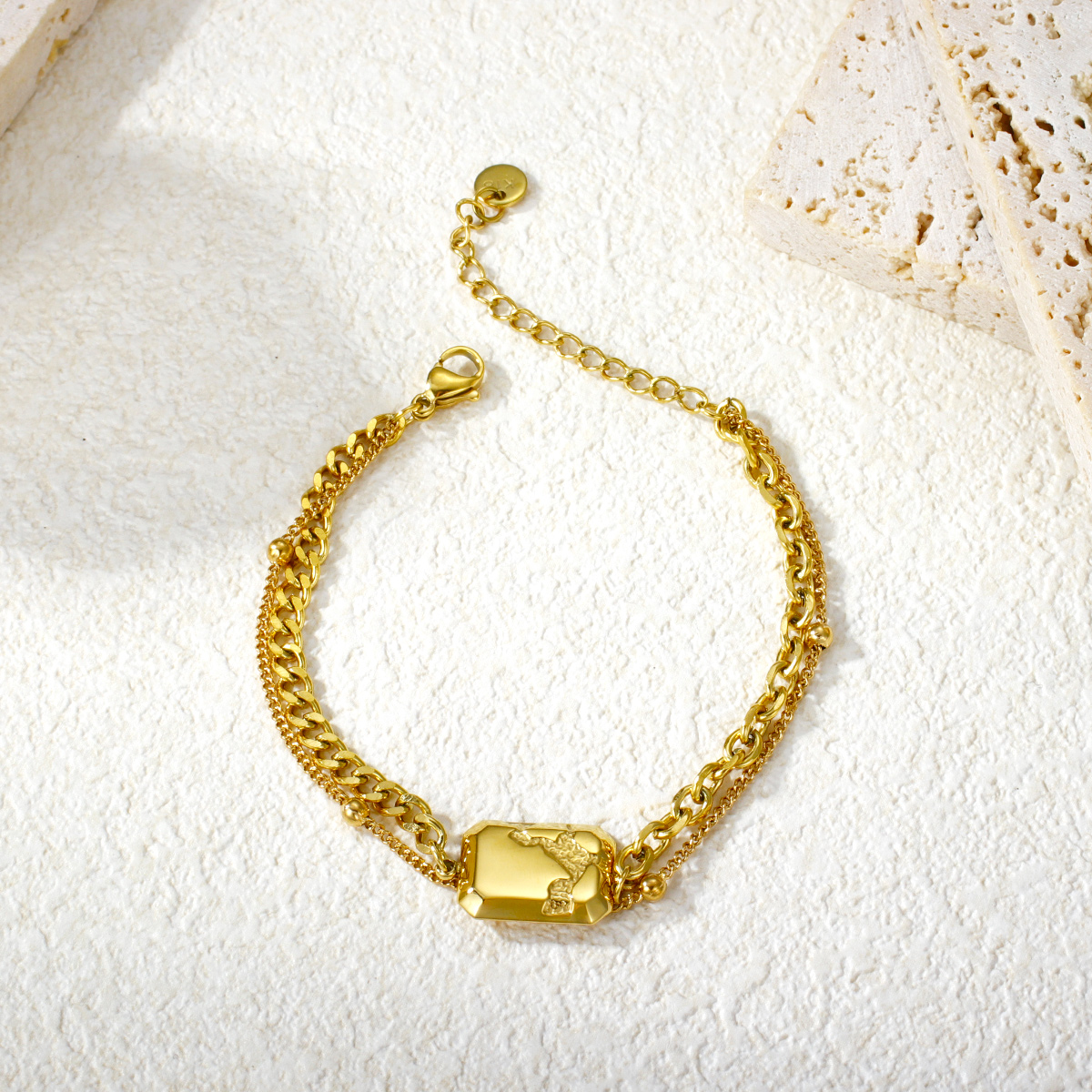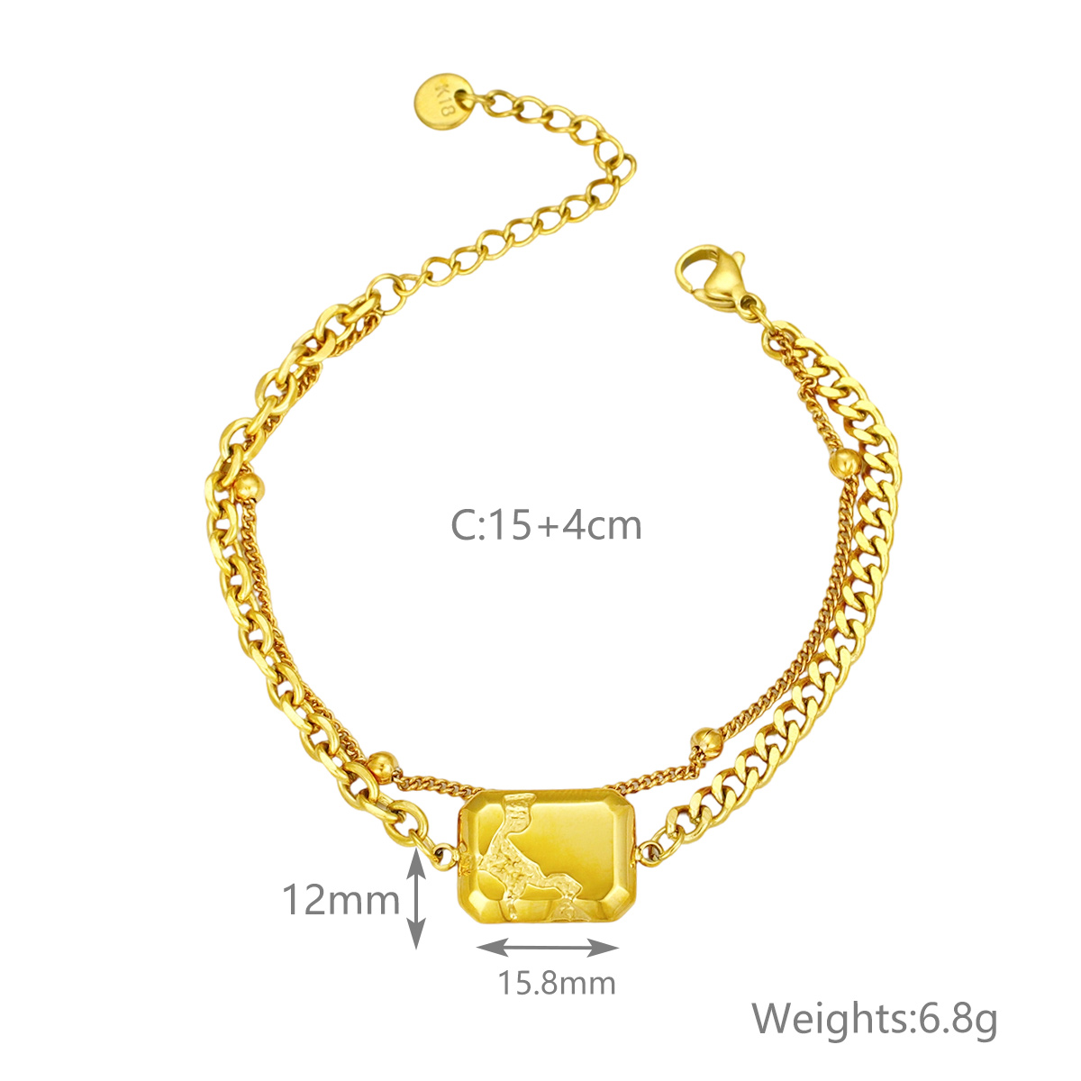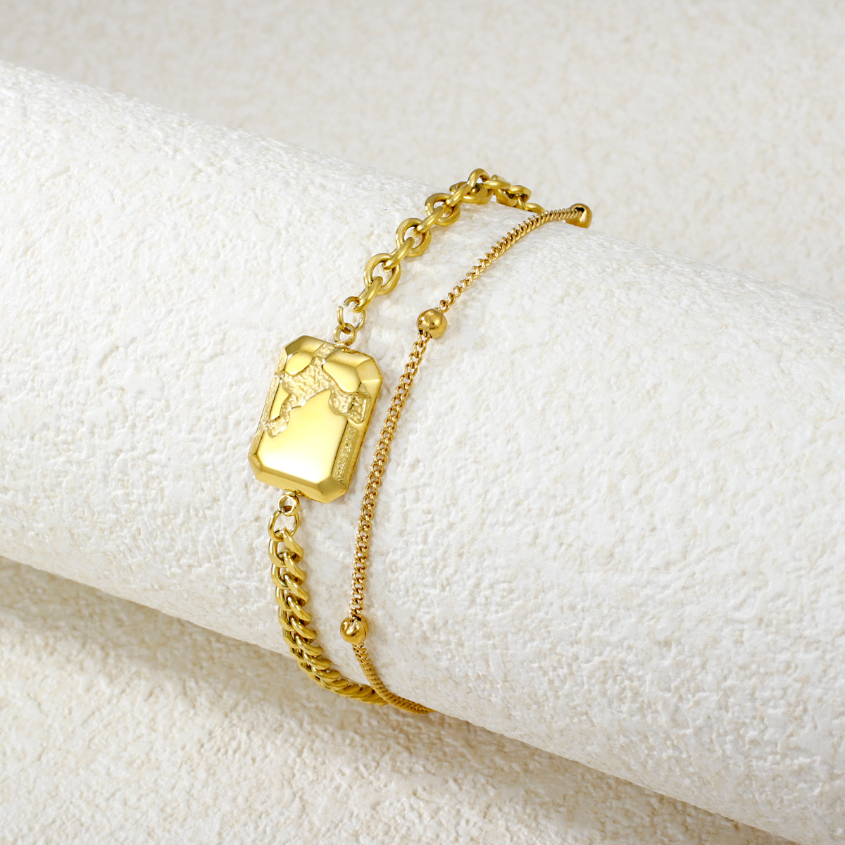 "18K镀金不锈钢首饰复古双层链方形吊坠"