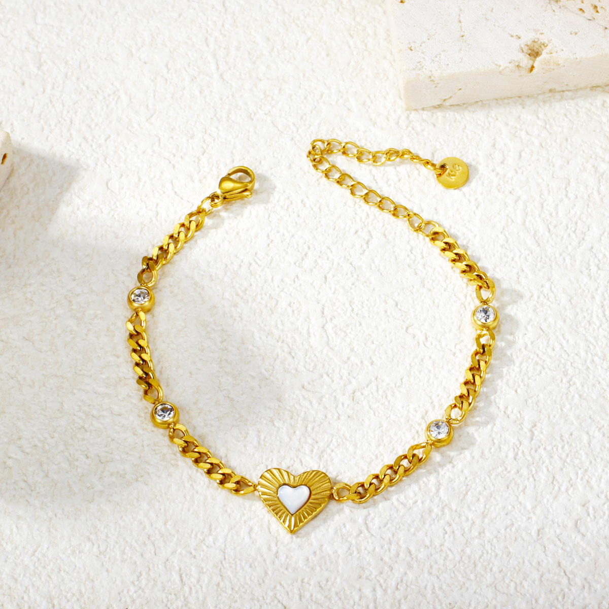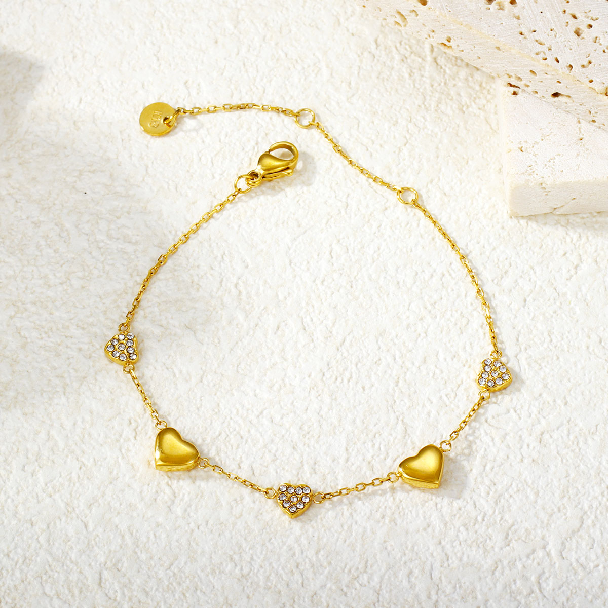 "批发镂空心形手链 18k镀金不锈钢桃心女士珠宝"