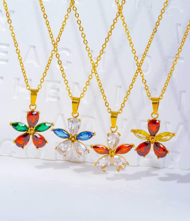 "祖母绿马眼锆石水晶环保不锈钢雏菊项链"