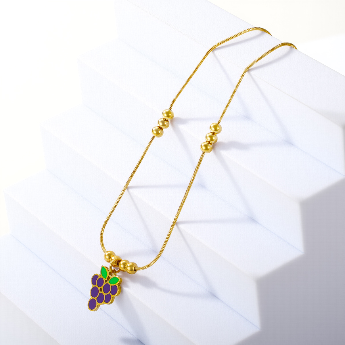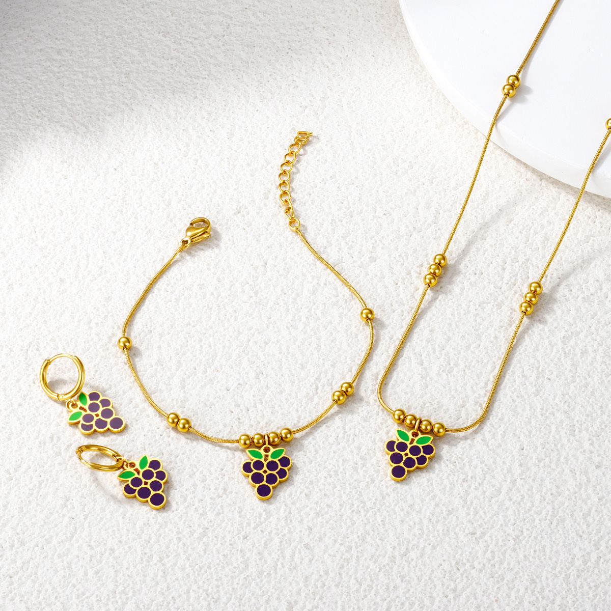 "时尚彩色镀金紫色葡萄项链耳环套装"