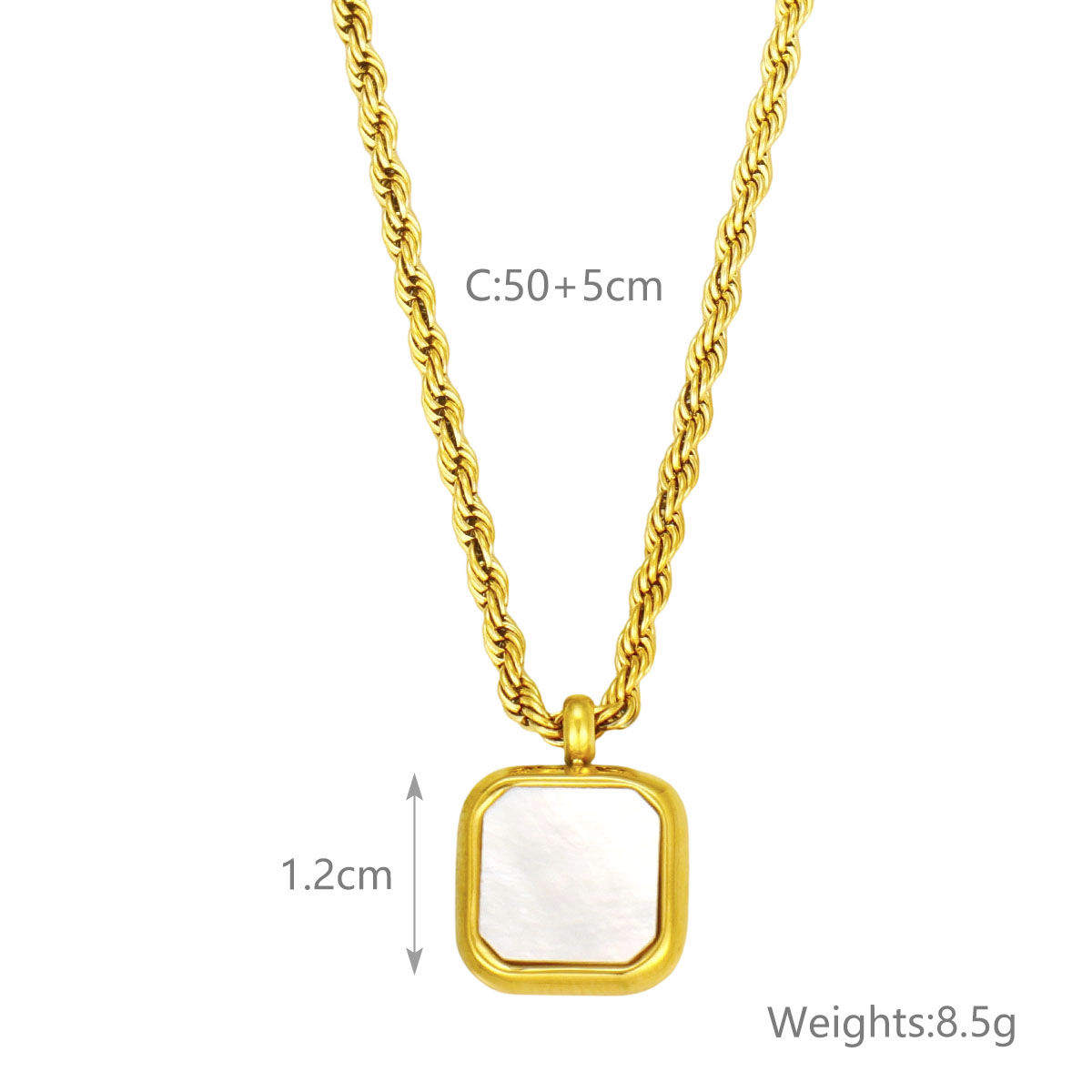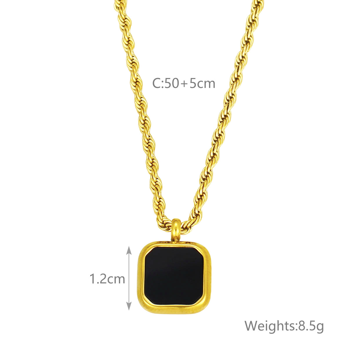 "18K金不锈钢绳链方形黑玛瑙石项链"