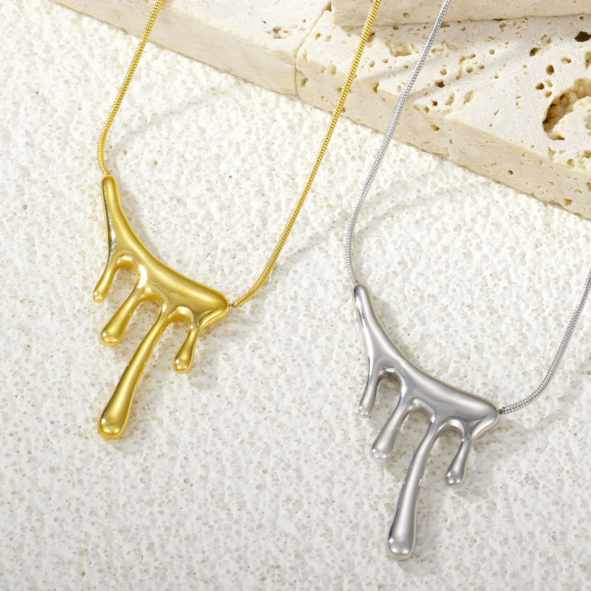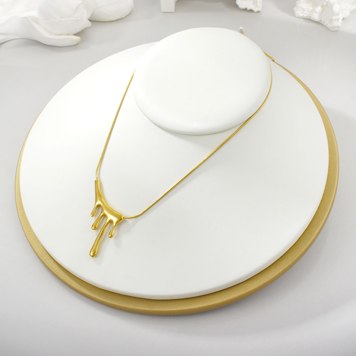 "优雅18K镀金几何水滴项链时尚吊坠项链"