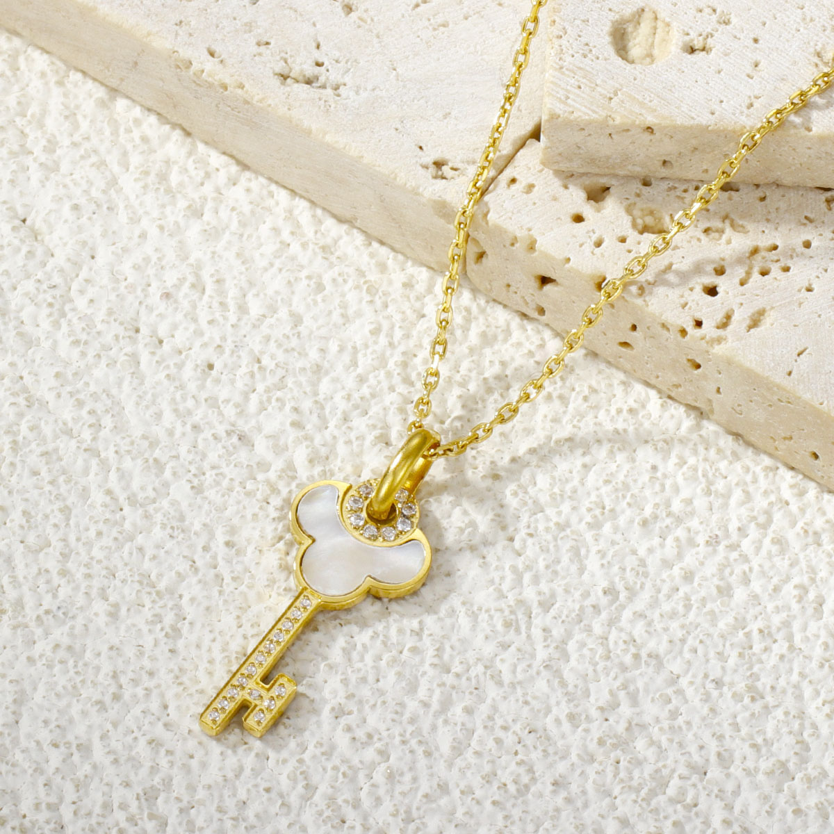 "不锈钢锁骨链项链镶满钻石的贝壳钥匙吊坠"