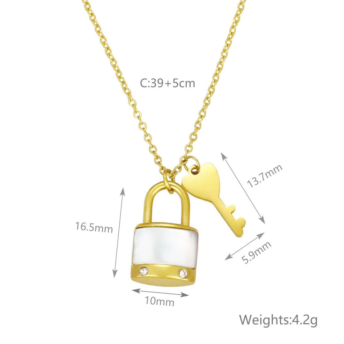 不锈钢锁骨链项链镶满钻石的贝壳钥匙吊坠