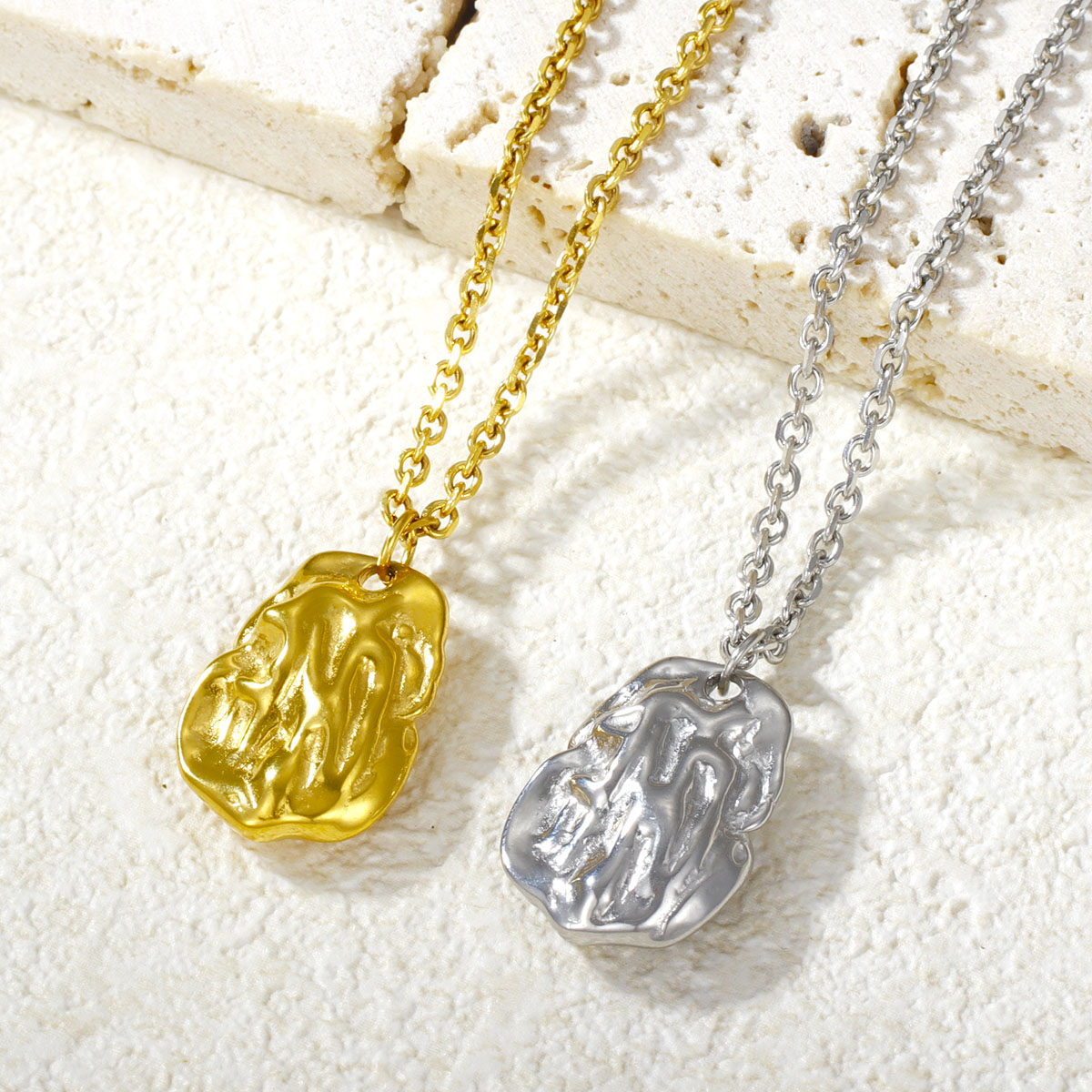 镀银镀金可调节链条方形吊坠项链