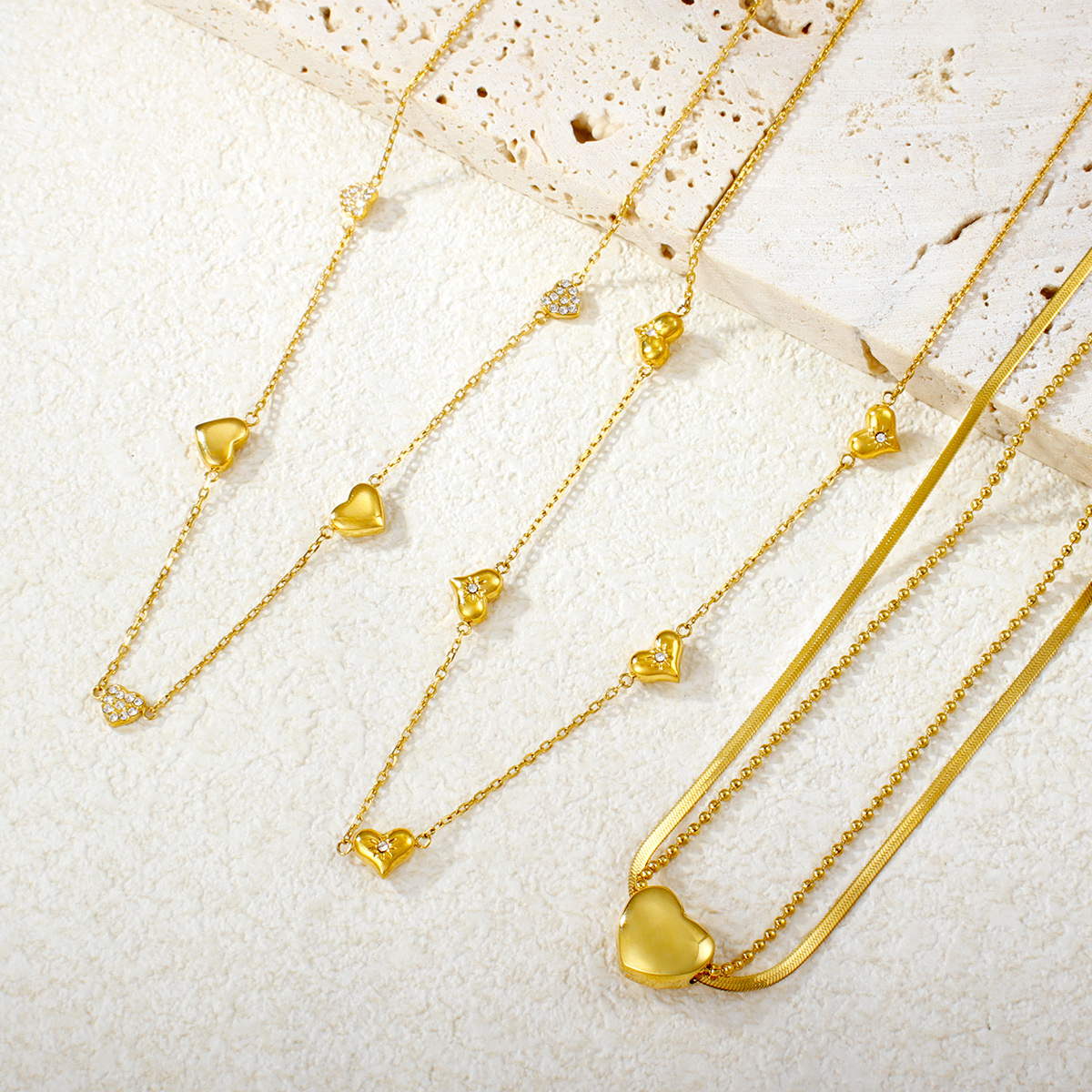 防褪色18K镀金永恒之爱项链不锈钢心形吊坠