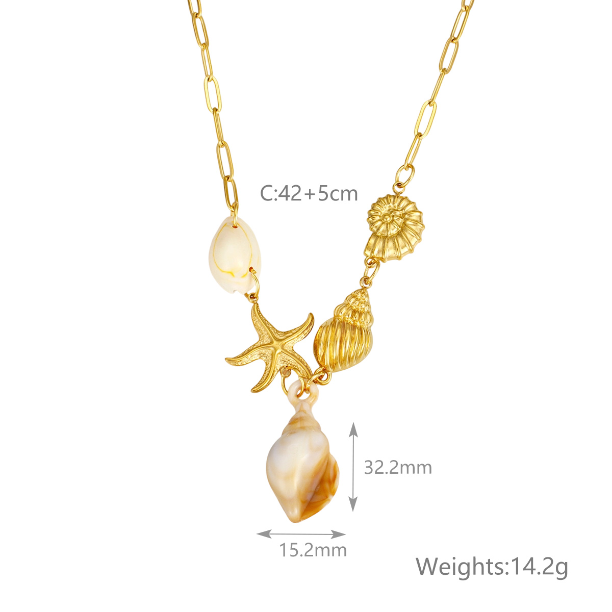 "夏季海洋风不锈钢镀18k金可拆卸贝壳吊坠项链"