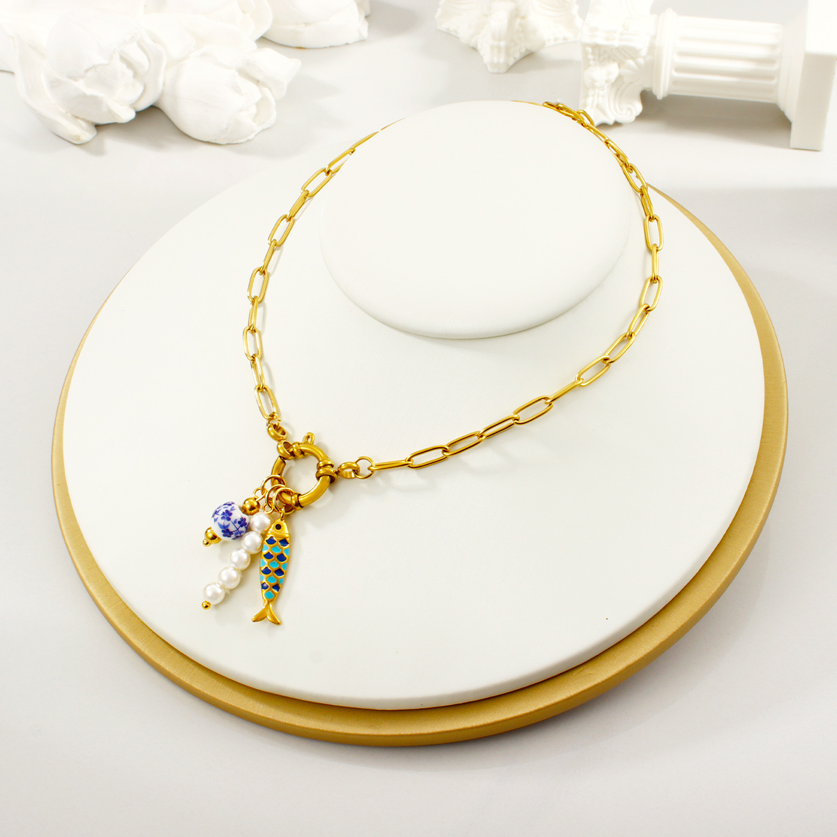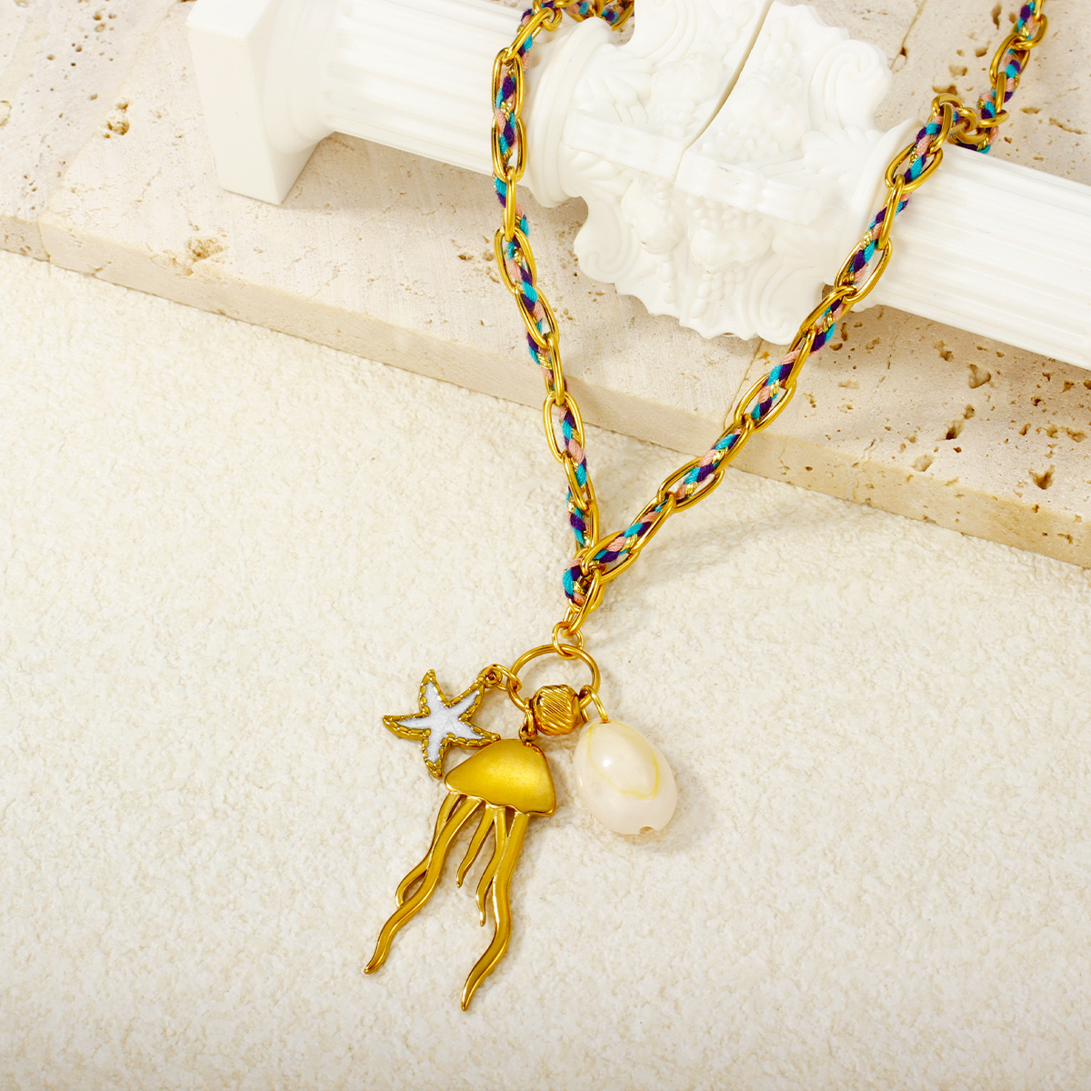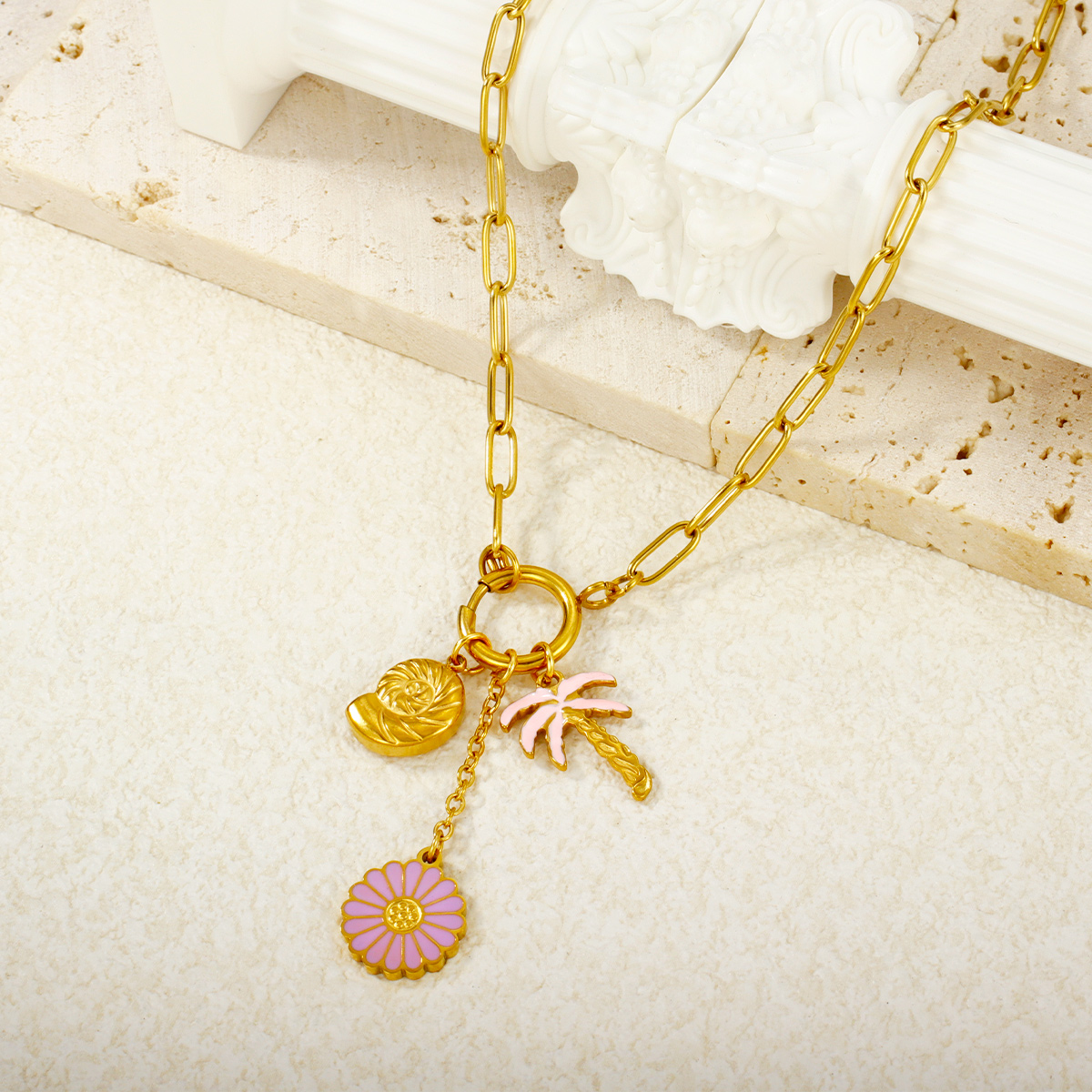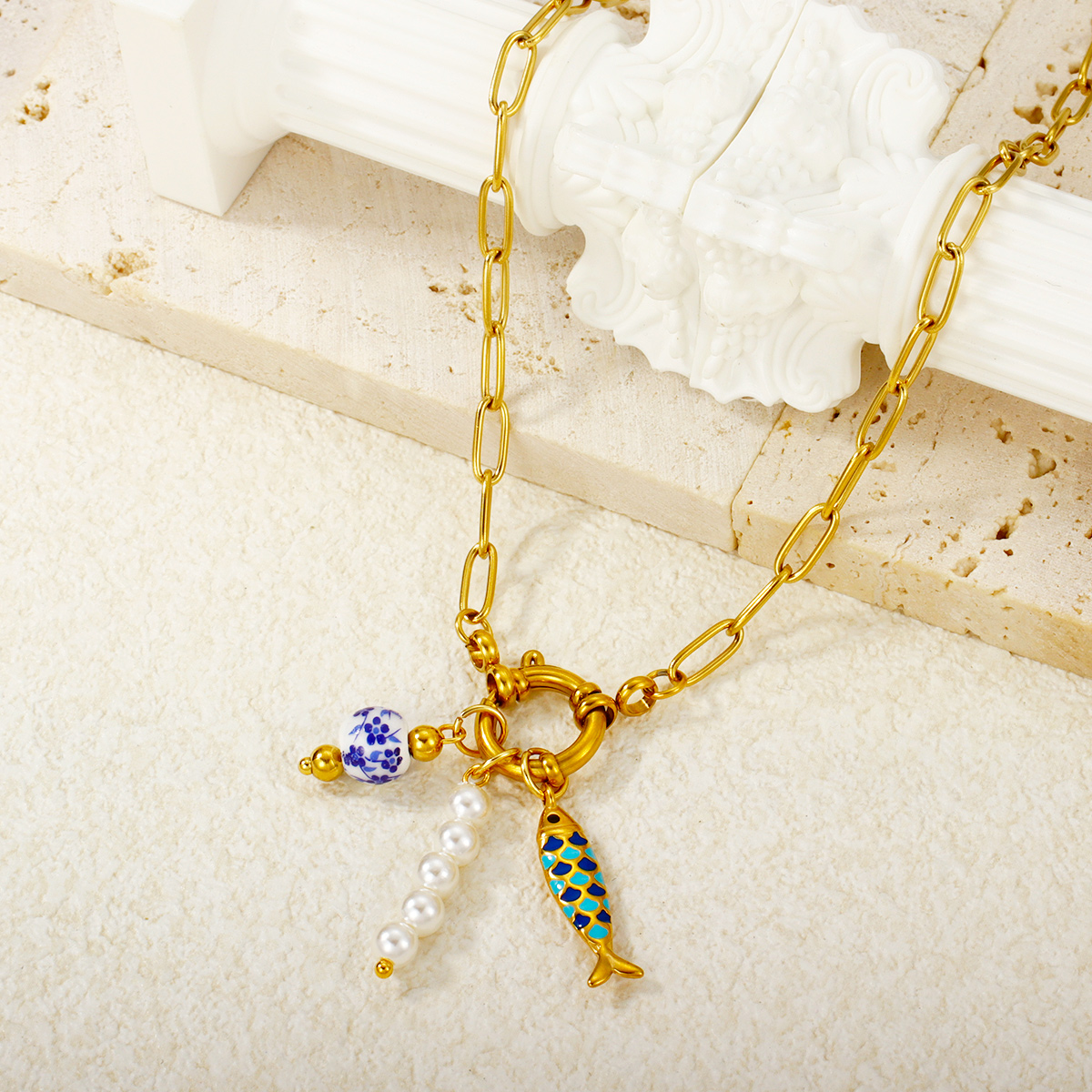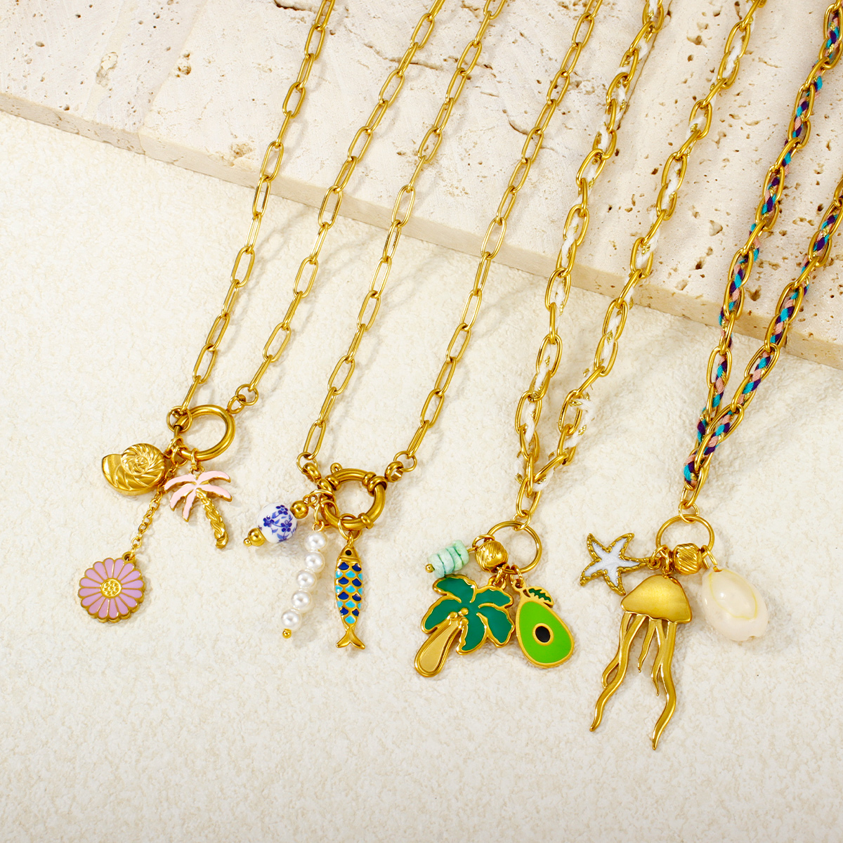 "潮流批发海洋系列吊坠 18K 镀金不锈钢项链"