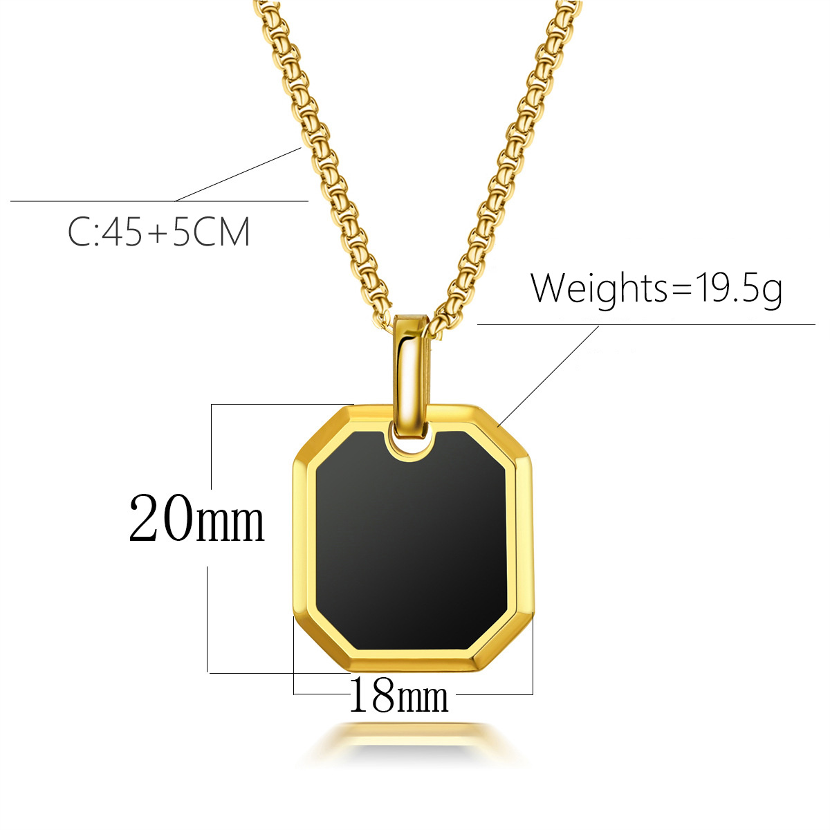 18K镀金不锈钢男士项链方形珍珠链油滴方形吊坠时