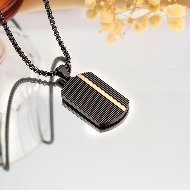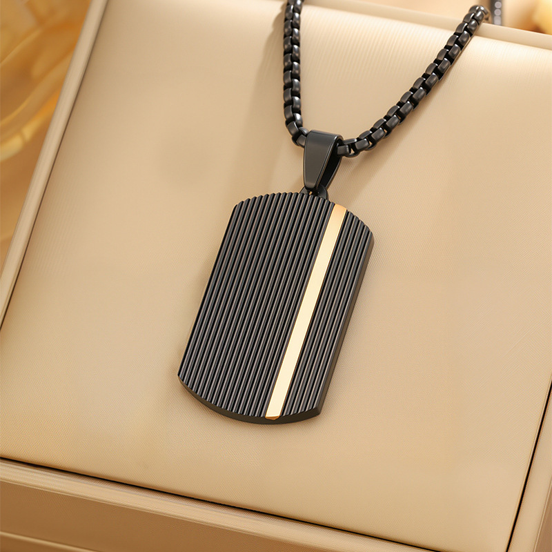 时尚嘻哈男士黑色条纹长方形吊坠