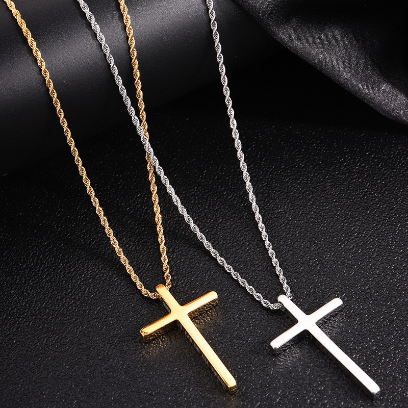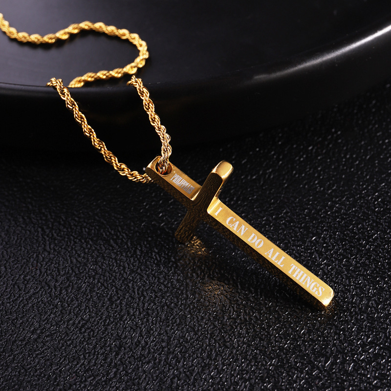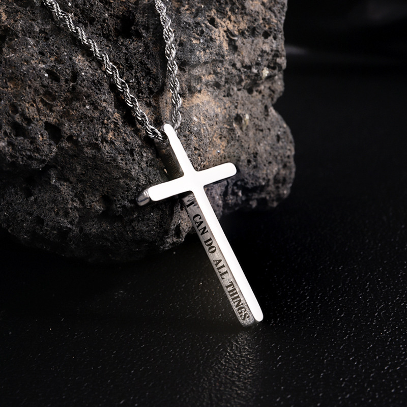 "简约不锈钢黑色十字架吊坠项链,可刻字"