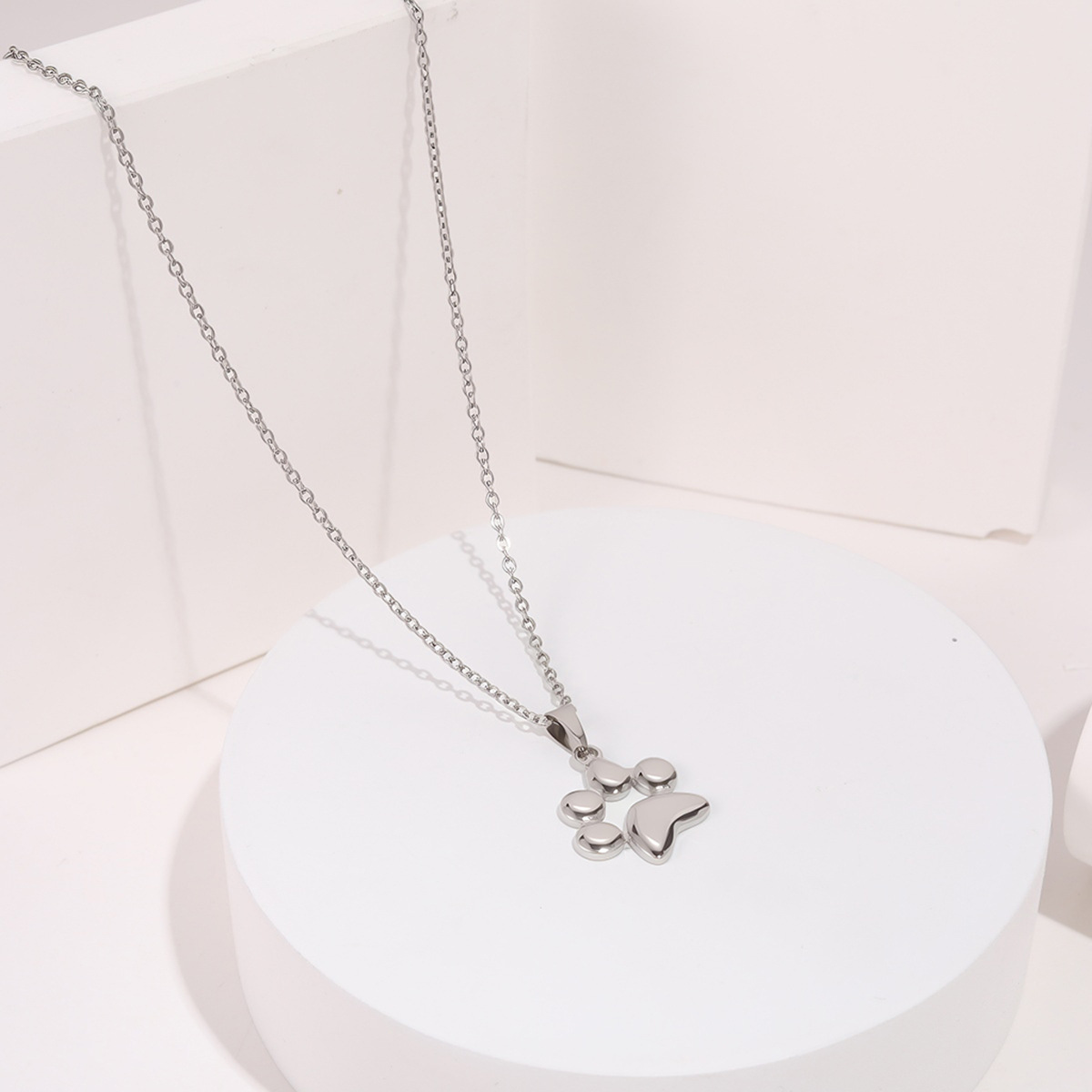 "个性化不锈钢可爱宠物名字刻字狗爪印吊坠项链"