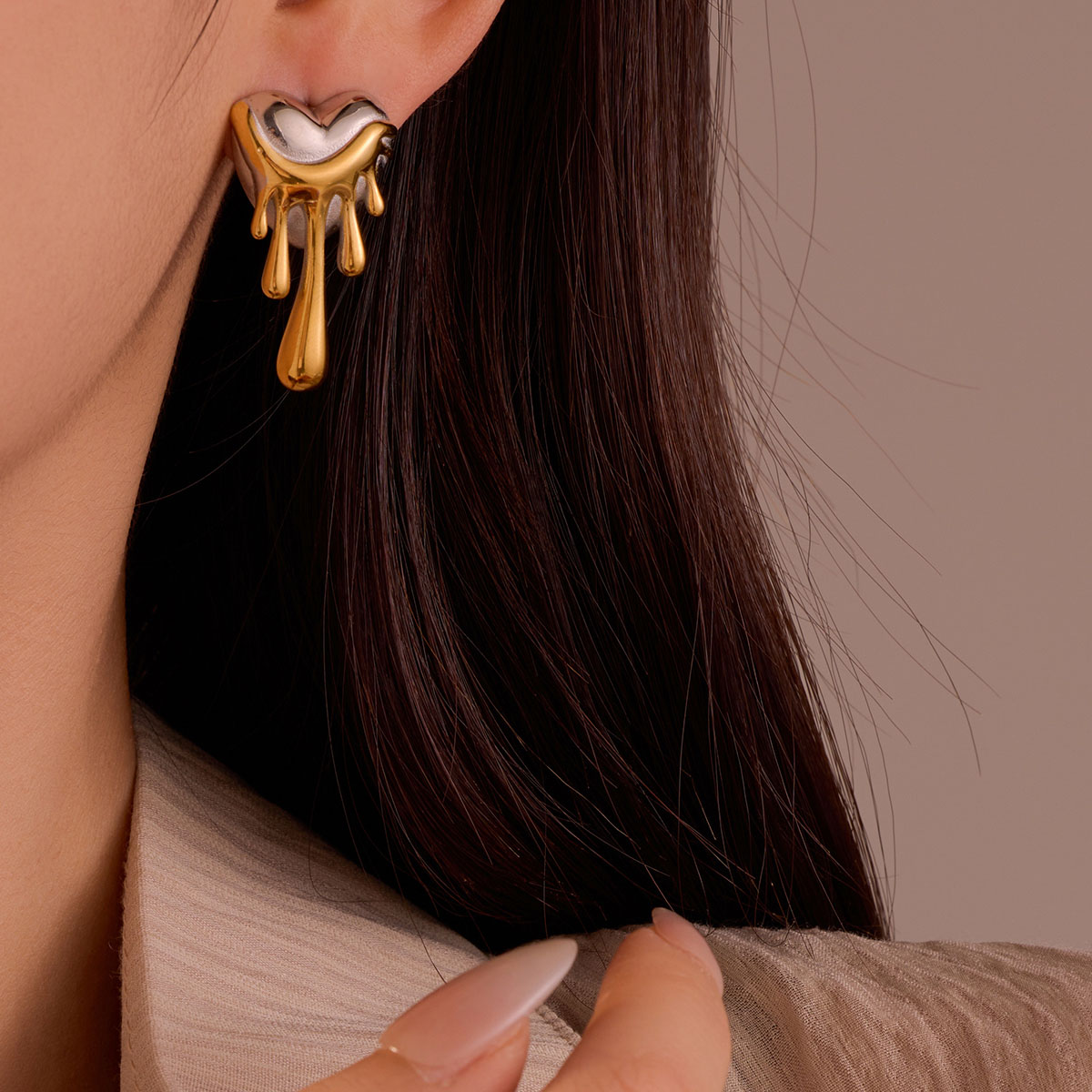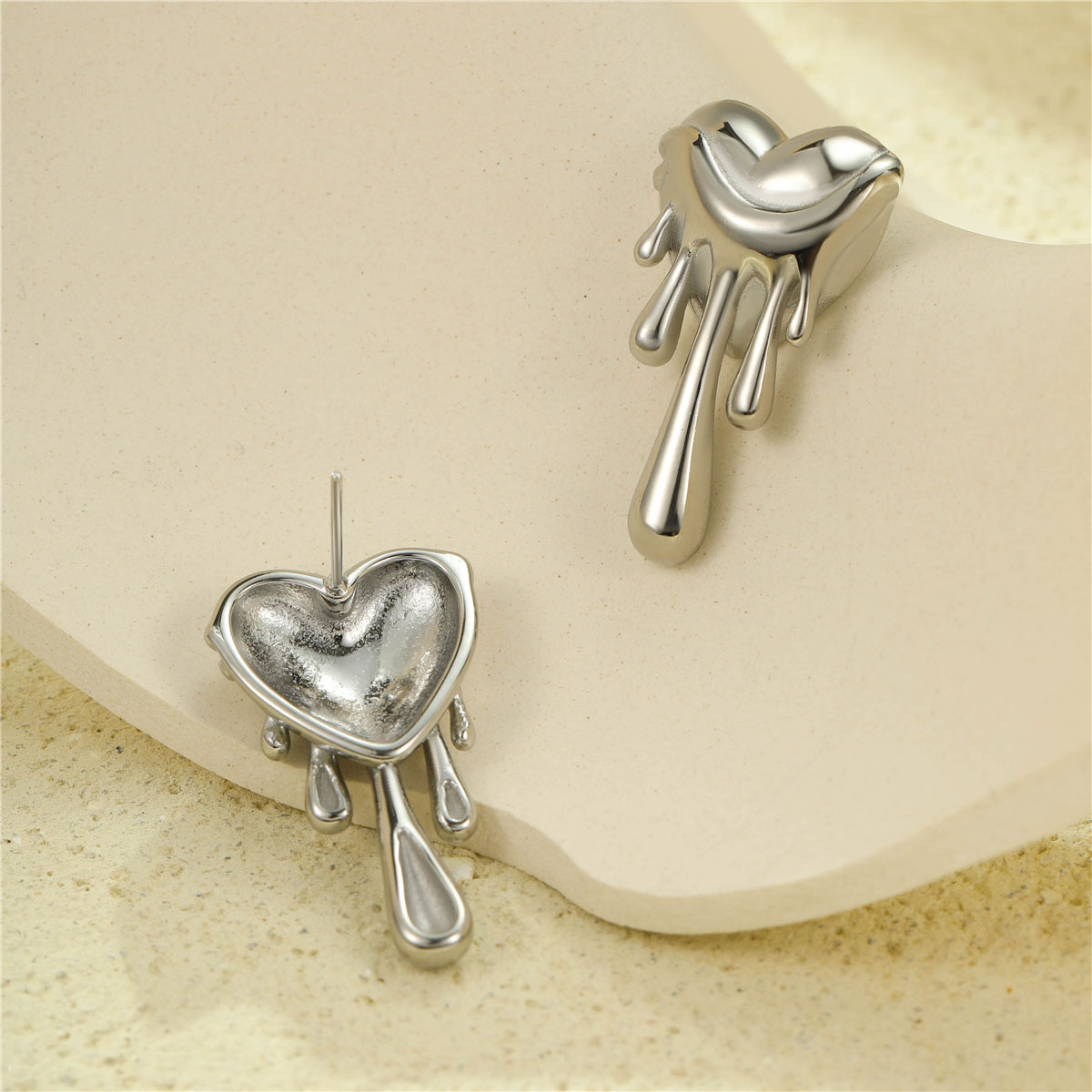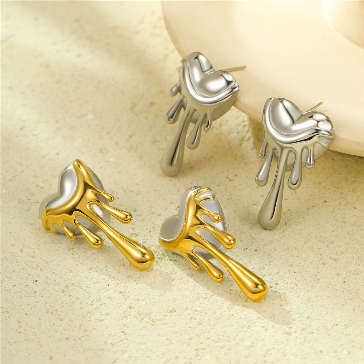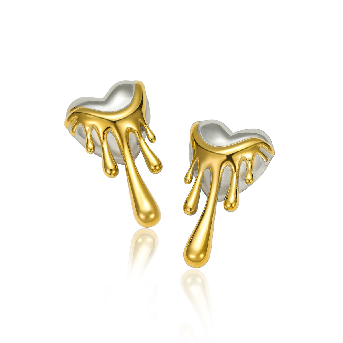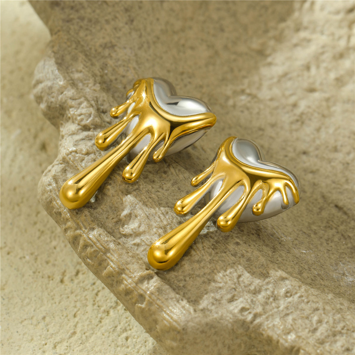 "18K镀金熔岩爱心耳钉"