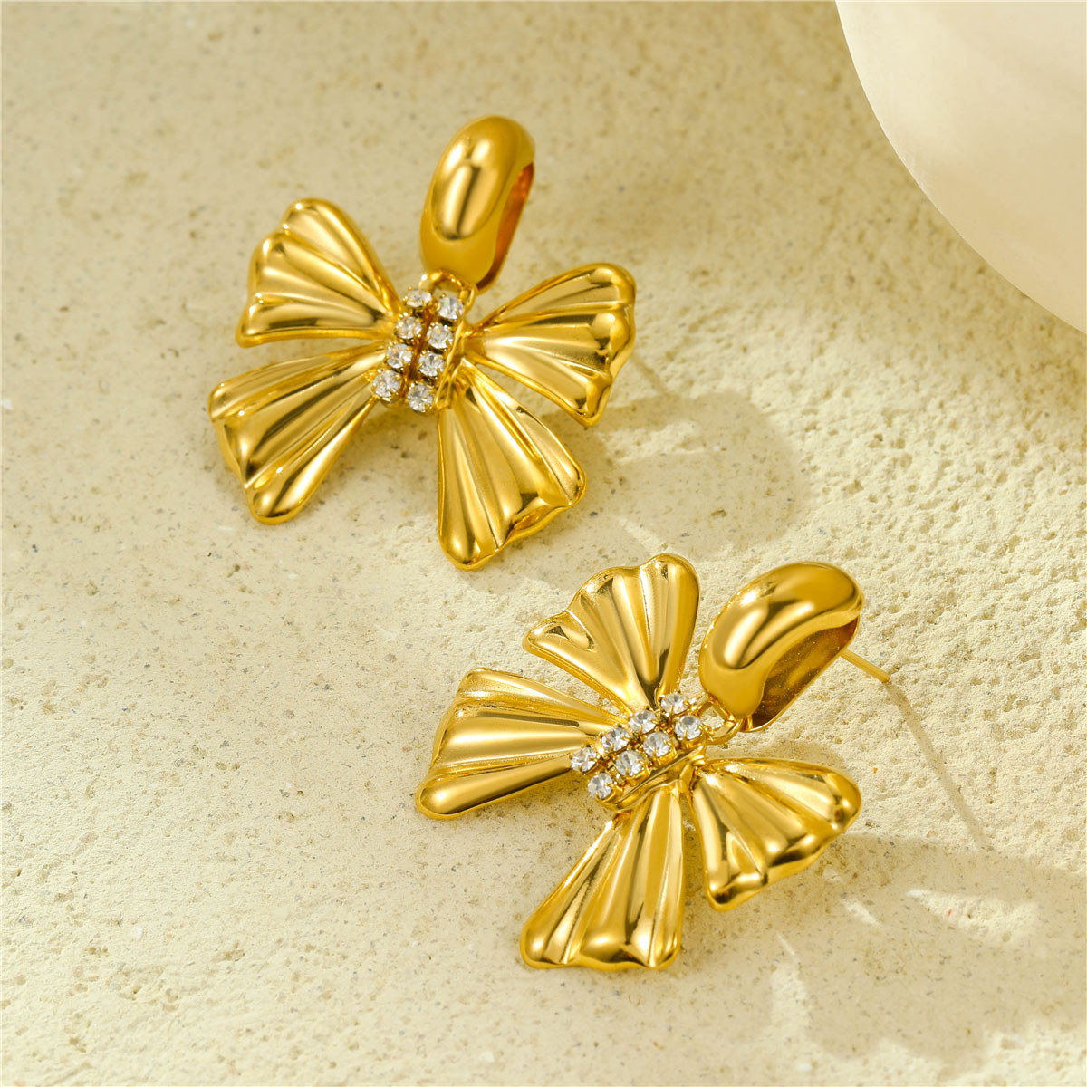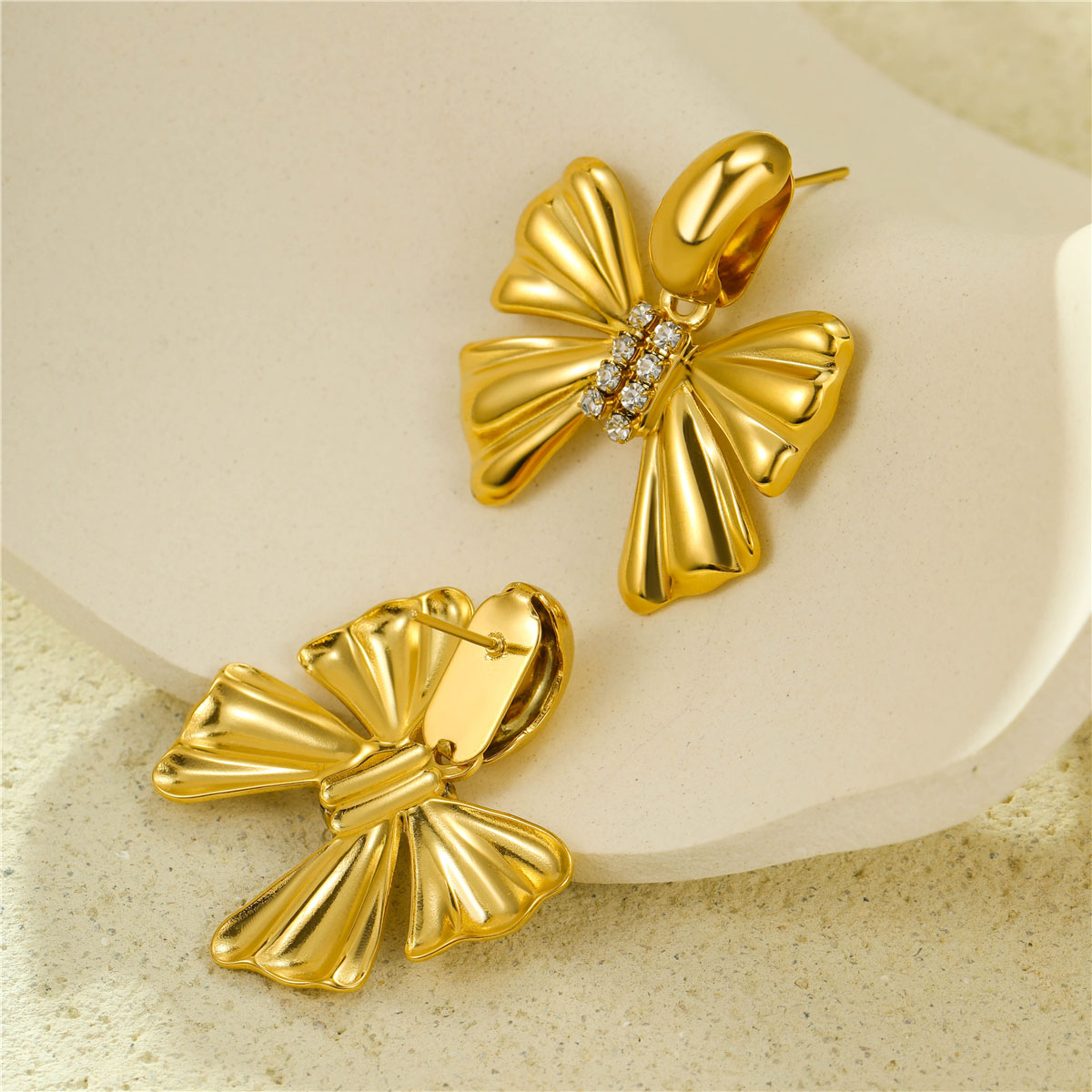 时尚18K镀金不锈钢蝴蝶结耳坠
