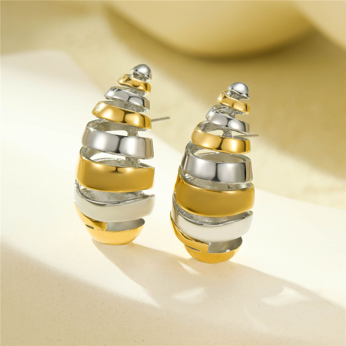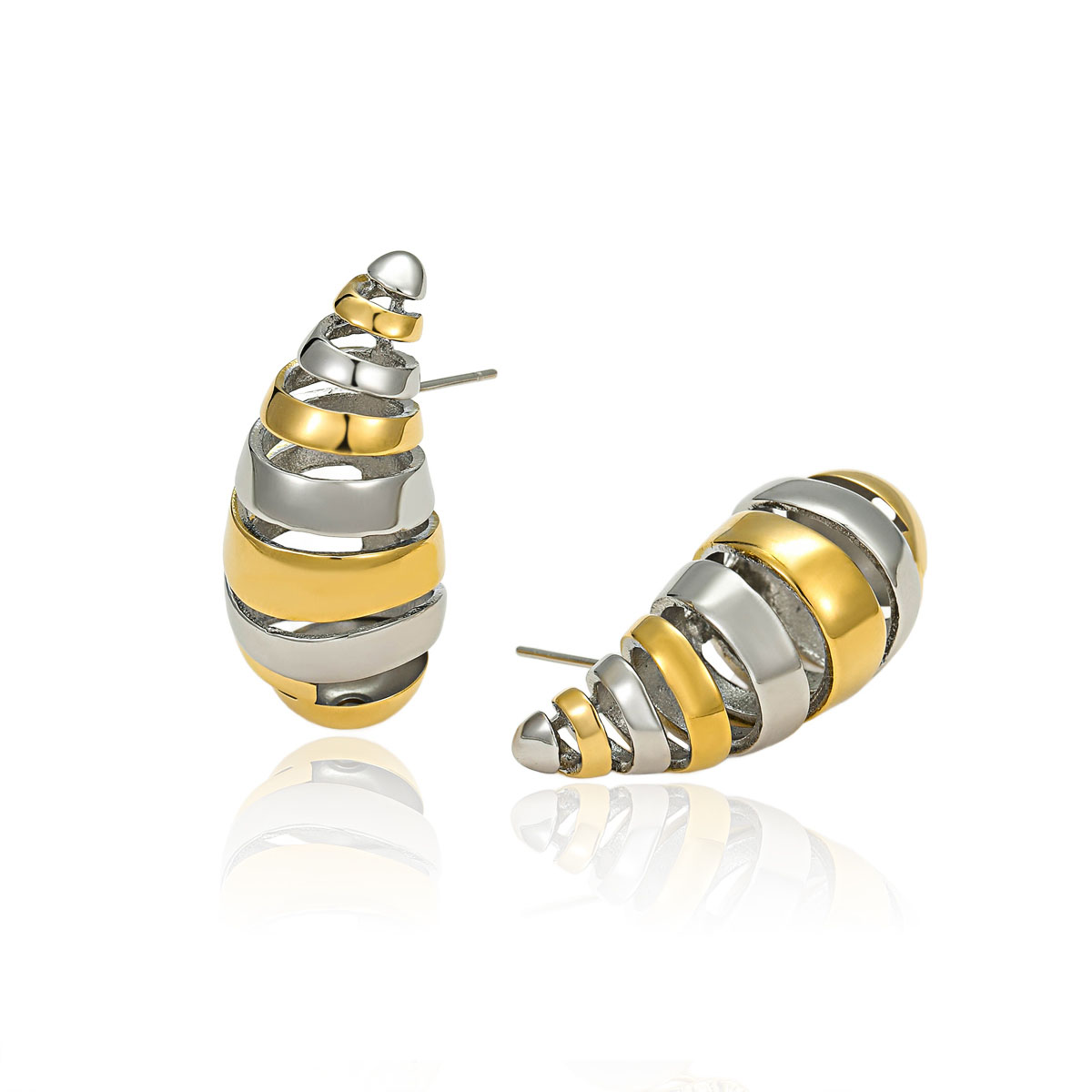 "个性简约不锈钢双色镂空水滴耳钉"