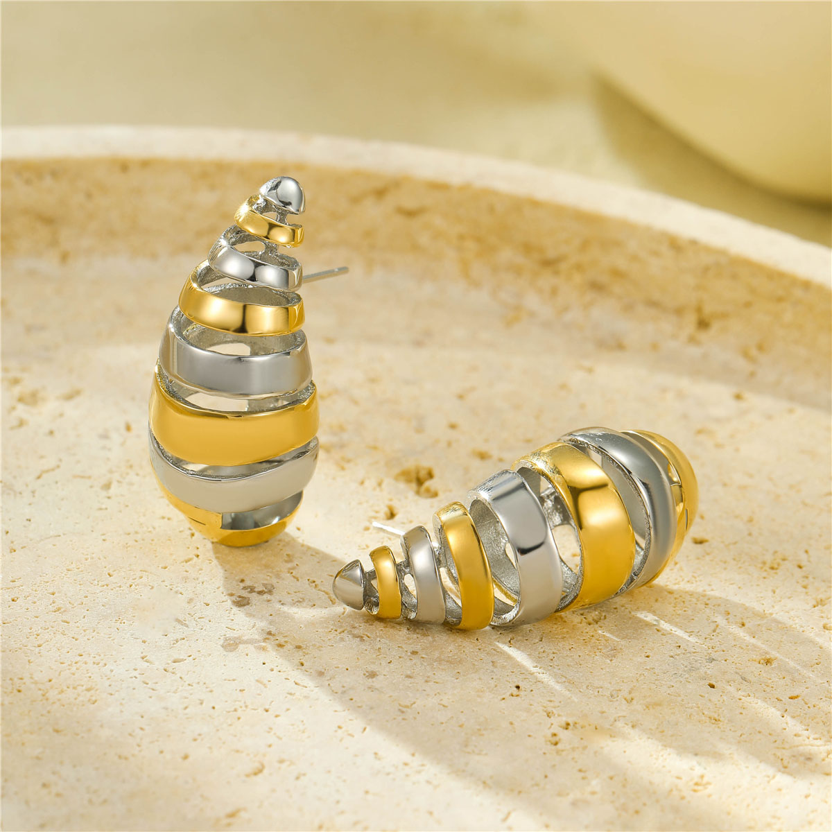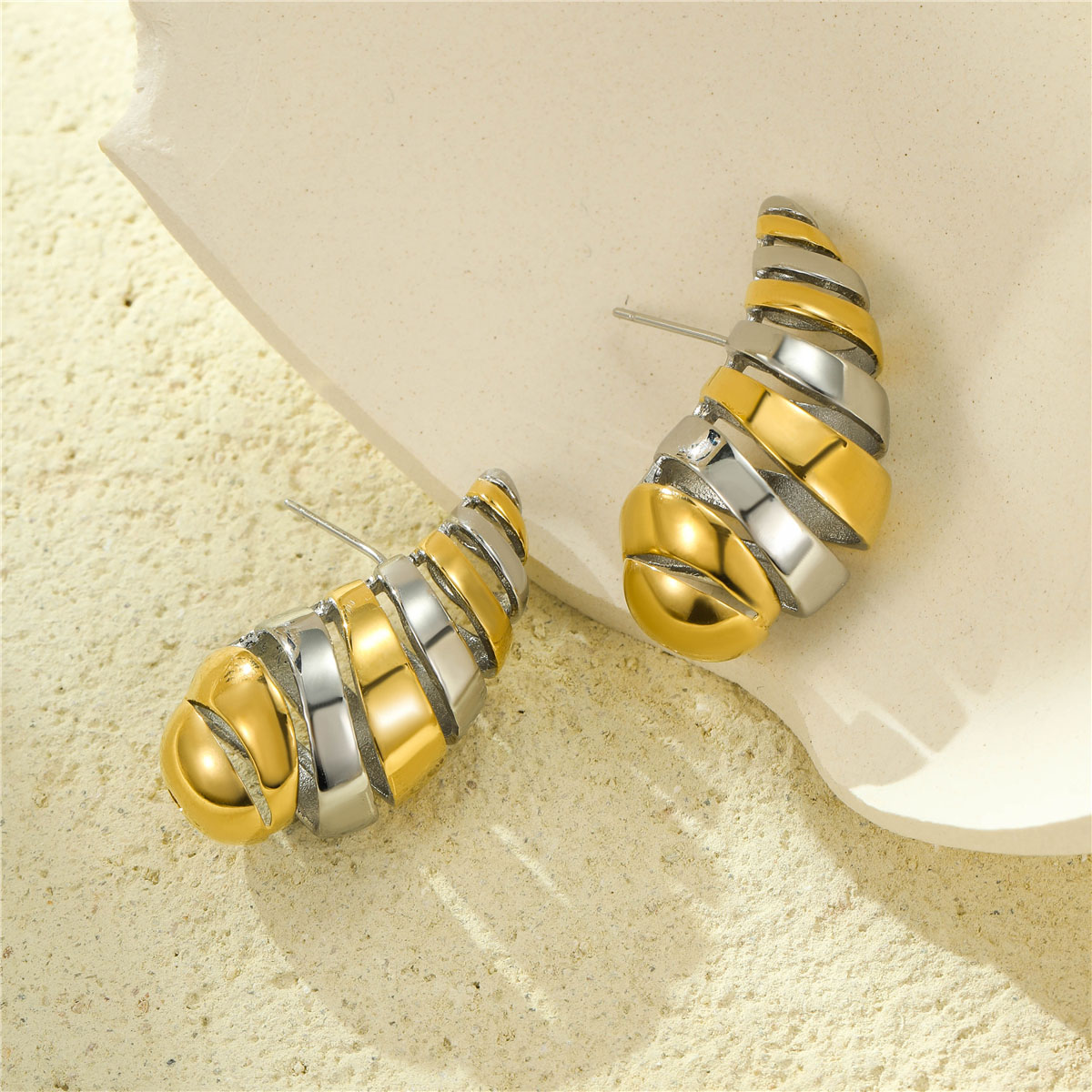 个性简约不锈钢双色镂空水滴耳钉
